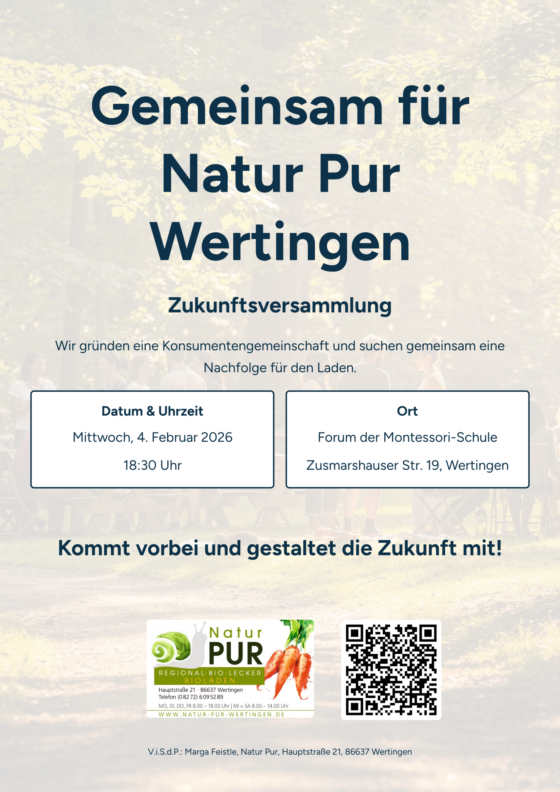 Aufgrund dieser Sachlage wollen wir mit Ihnen darüber beraten, ob und wie es konkret mit dem Wertinger Bio-Laden im nunmehr 10. Jahr seines Bestehens weitergehen könnte.